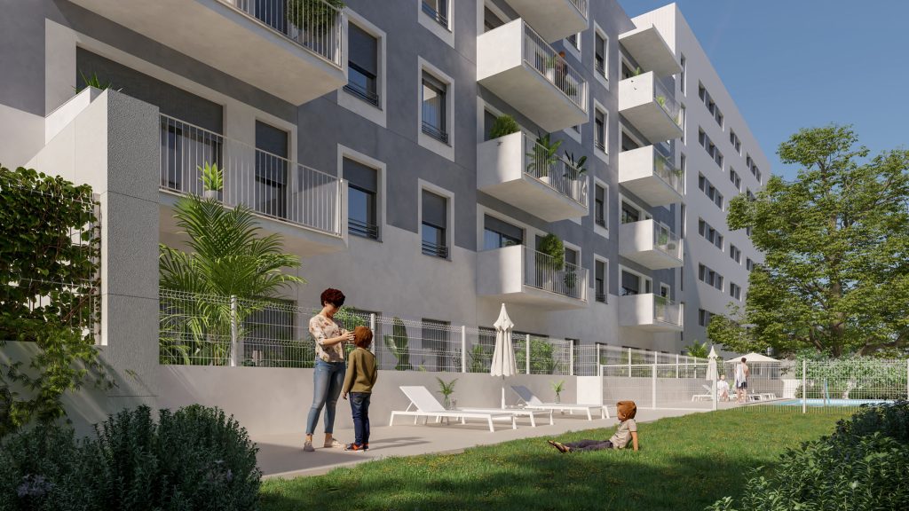 Nou Llevant Viladecans was born from the creative vision of Nogué Onzain Arquitectes, who propose a project that combines functionality and sustainability with contemporary architecture, in perfect harmony with the environment. The homes are designed to make the most of natural light, offering open spaces and common areas that invite to create community.
