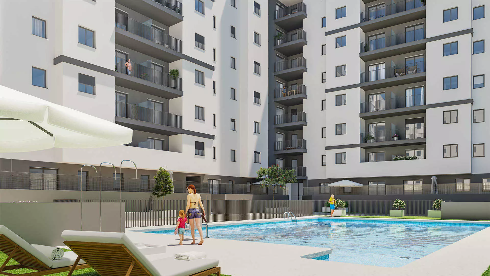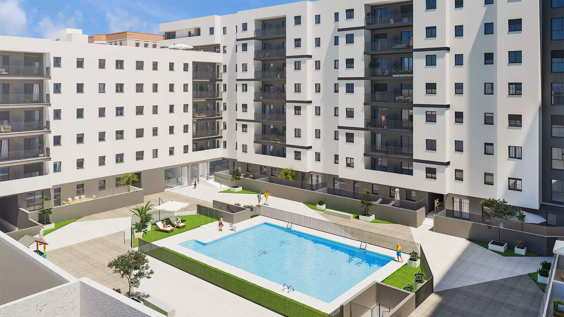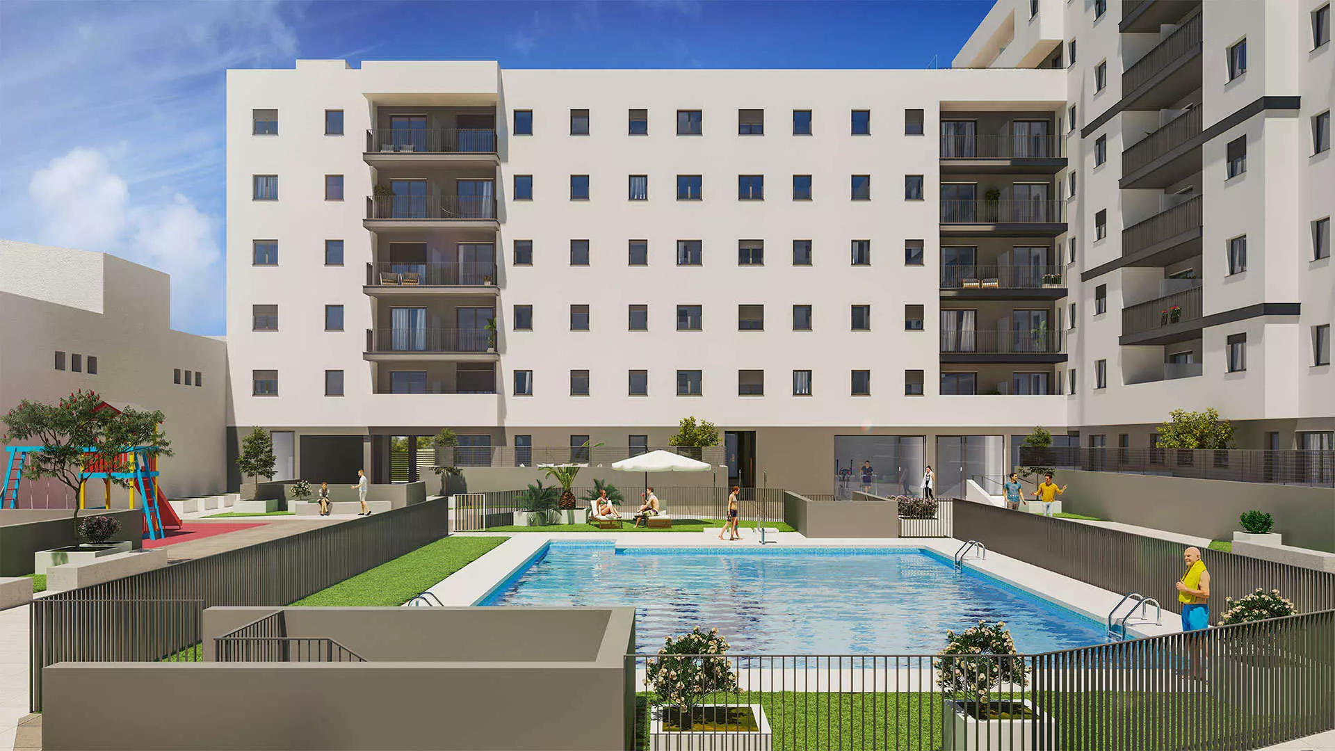 - Communal swimming pool, children’s area, Social Club Space, Kids Space, Coworking Space, Gym Space, Bicycle Space and Cardioprotected Space.