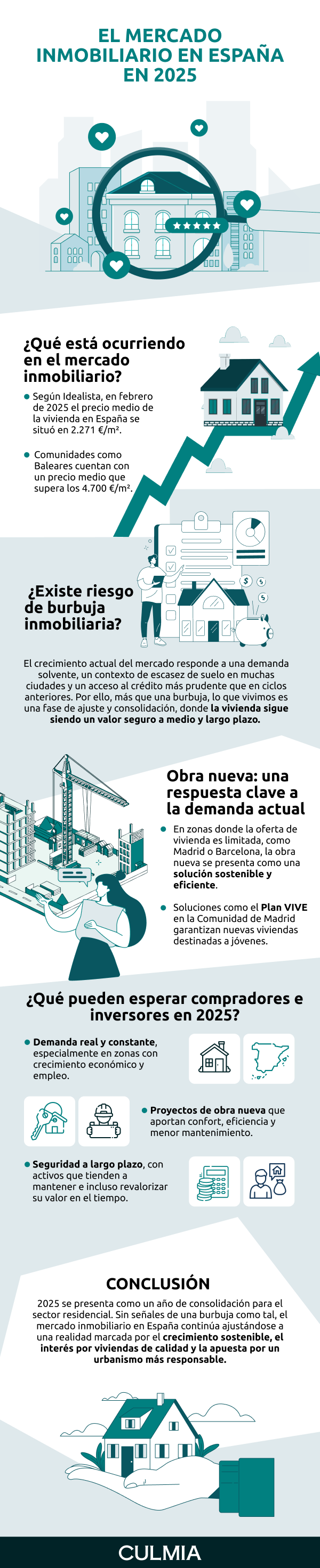 El crecimiento actual del mercado responde a una demanda solvente, un contexto de escasez de suelo en muchas ciudades y un acceso al crédito más prudente que en ciclos anteriores. Por ello, más que una burbuja, lo que vivimos es una fase de ajuste y consolidación, donde la vivienda sigue siendo un valor seguro a medio y largo plazo.