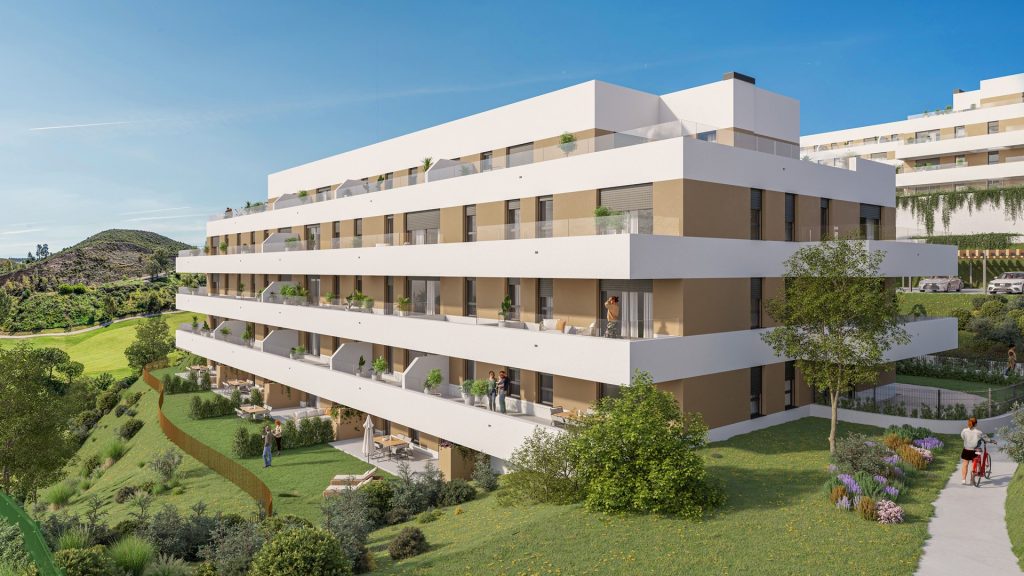 Culmia Cala Swing Mijas está formada por 155 viviendas de 1, 2 y 3 dormitorios, entre las que destacan tanto plantas bajas con jardín privado como áticos con vistas directas al campo de golf Calanova Golf Club.